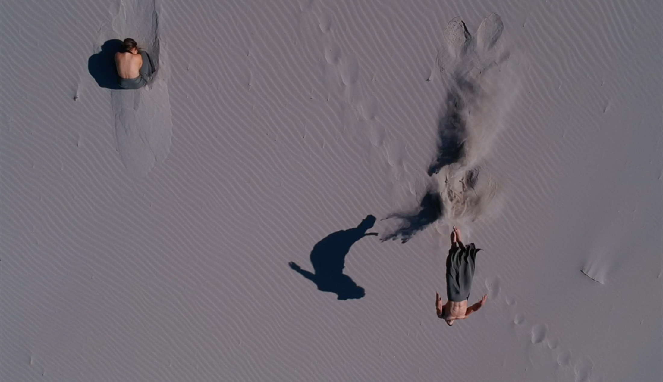 A sand dune, dazzling light, zoom in on sunburnt skin in windblown clothes, figures crouching in the sand, breathing, sometimes alone, sometimes shoulder to shoulder. They roll down the dune, finally plunging into the waves off the Greek island of Peloponnes and drifting there like buoys, while the spray washes over their bodies. The visual power of dancing bodies on the screen is unique: full of emotional force and so close to one's own gaze, as if one could touch them—even closer than at a live performance.