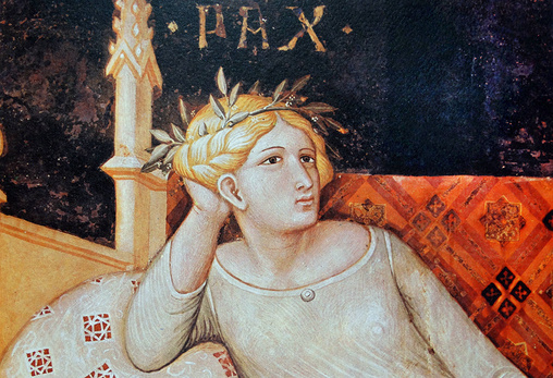 A powerful symbol of this idea can be found in Siena: Ambrogio Lorenzetti’s 14th-century fresco cycle The Allegory of Good and Bad Government in the Palazzo Pubblico. In one detail from The Allegory of Peace, a seated female figure embodies balance, justice, and civic harmony – virtues that remain as urgent today as they were 700 years ago. Her presence reminds us that governance is not merely a technical system but also a moral and cultural task: to create conditions under which communities can thrive, conflict can be transformed, and trust can endure.