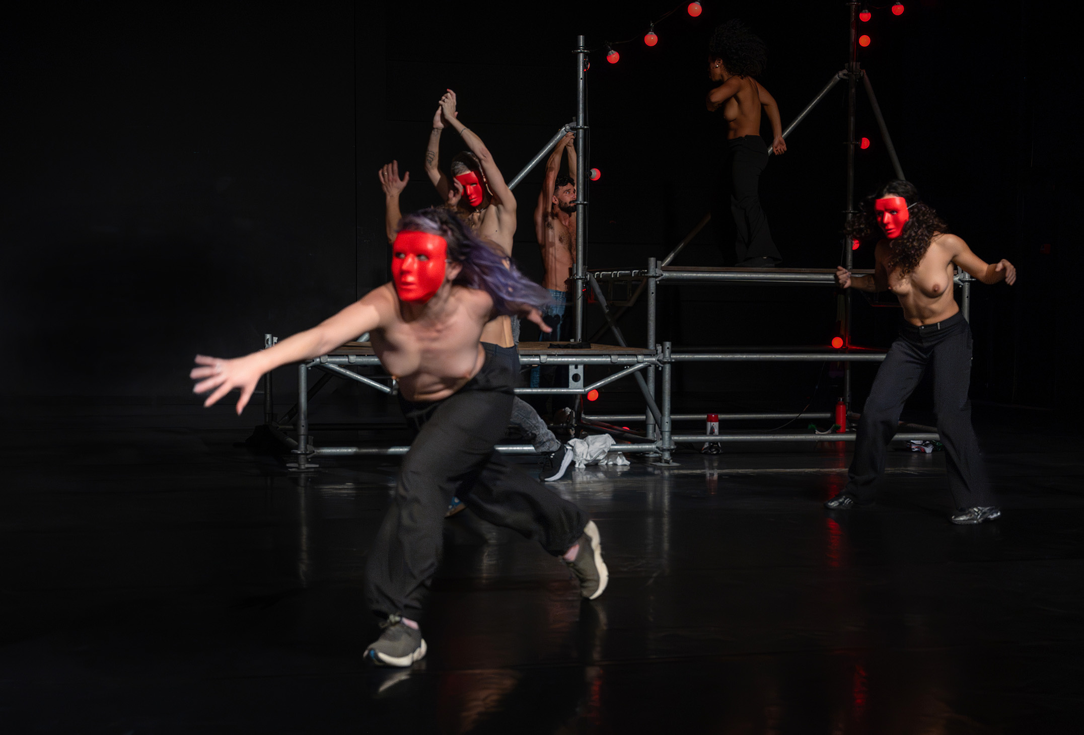 Once the night sets in, boundaries begin to blur. Enticing, yet scary, frivolous with a sprinkle of danger, revealing but always ephemeral, it gathers silence and deafening music, calm and sweat, pleasure and violence. The night may usher in a potential for an assault on the daytime realities and a yearning for a paradigm shift. Its spirit can liberate the frenzy, sanctioned during the day. In Mette Ingvartsen’s Delirious Night, nine performers roam the No Man’s Land between the nighttime ambiguities and their messy, joyful, frantic, and at times desperate desire to let go and find ways to rebel together.