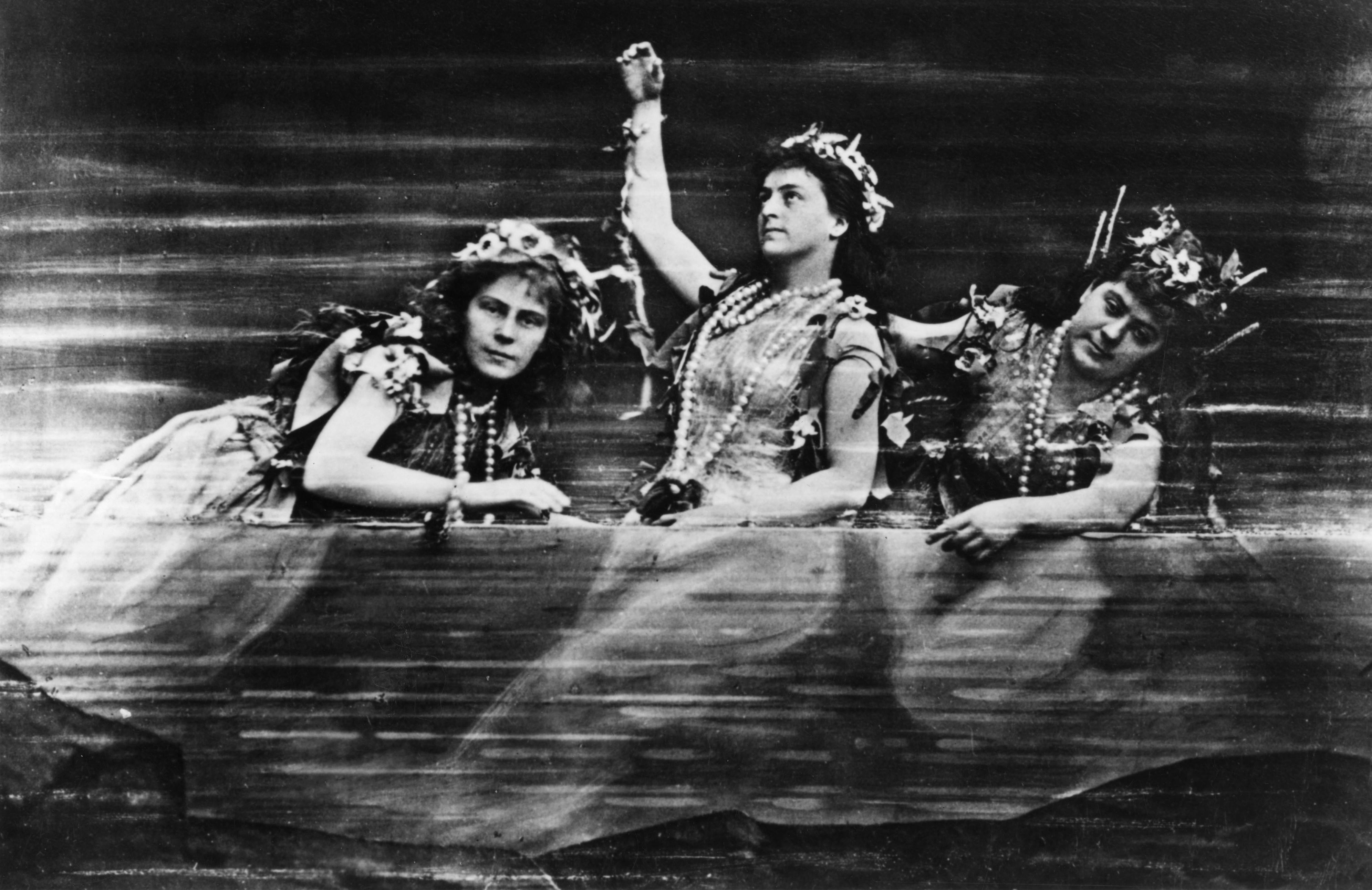 Um die Jahrhundertwende entstanden schließlich die ersten Bühnenfotografien: gestellte Aufnahmen, nicht bei authentischer Szenenbeleuchtung aufgenommen, sondern wie Gruppenfotos mit dem gesamten Ensemble und mit allen verfügbaren Lichtquellen. Parallel dazu florierte weiter das Geschäft mit Schauspieler- und Sängerporträts im Atelier – der einzig verlässliche, aber höchst beliebte Weg, Fotografien auch für die Presseberichterstattung zur Verfügung zu haben.