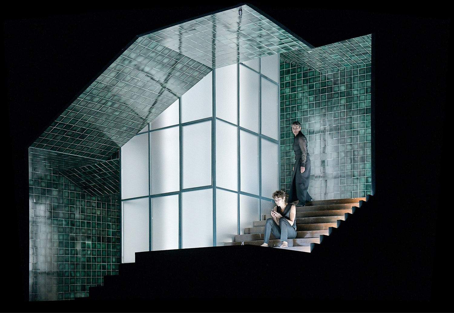 Korinth ist ein Treppenhaus. An fensterlosen, grün gekachelten Wänden entlang schraubt sich eine Holztreppe von links unten nach rechts oben um einen künstlich beleuchteten, milchverglasten Schacht. Hier fährt jedoch kein Fahrstuhl, stattdessen sieht man darin gelegentlich schemenhaft Gestalten wandeln wie eingeschlossene Geister. Raimund Orfeo Voigts geheimnisvoller Übergangsraum auf der Stuttgarter Schauspielbühne bietet nur minimalen Spielraum, aber jede Menge klaustrophobische Atmosphäre. Die slowenische Regisseurin Mateja Koleznik, die zwischen Wien und Berlin gerade viel gebucht wird, versucht auf halber Treppe eine psychologisch-realistische Ehekatastrophe zu inszenieren, ohne dabei auf den fast zweihundert Jahre alten (allerdings stark gekürzten) Grillparzer-Text zu verzichten.