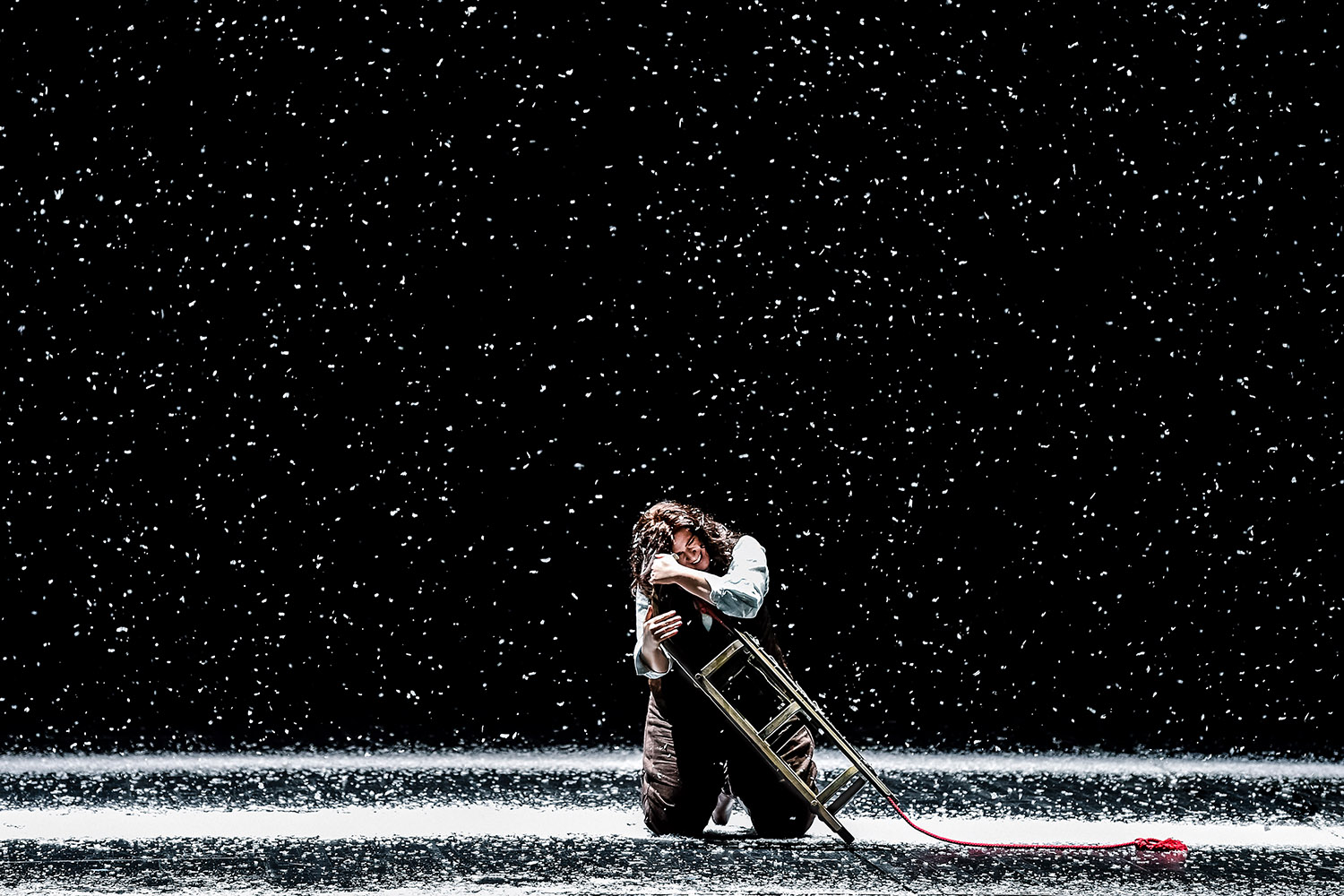 Es folgt der Auftritt Brünnhildes. Während der Schnee leise vom Schnürboden rieselt, fingert Stéphanie Müther am Benzinkanister, willens, diese ganze kaputte Welt in Brand zu setzen, immer noch mit flammendem Timbre ausgestattet. Doch da ist etwas, das sie abhält von ihrem Tun. Die Hoffnung auf eine andere, bessere Zukunft. Und für diese Hoffnung findet Elisabeth Stöppler ein Bild, das nahe geht: Ganz am Ende, der Bühnenkasten ist inzwischen nach hinten gefahren, aus dem Graben steigen modulierende Wellen herauf, treten nach und nach die Frauen auf die nun menschenleere Bühne – die Rheintöchter, eine Norn, die entgeistert am Rand stehende Gutrune, Erda, Waltraute – und nehmen sich bei den Händen; Hagens Schlussworte dröhnen aus dem Lautsprecher, der Schlitten Grane wird angezündet; auf die Mienen jener Wesen, die von männlichem Wahn sich bedrängt und bedroht sahen, tritt plötzlich ein sanfter Schein.