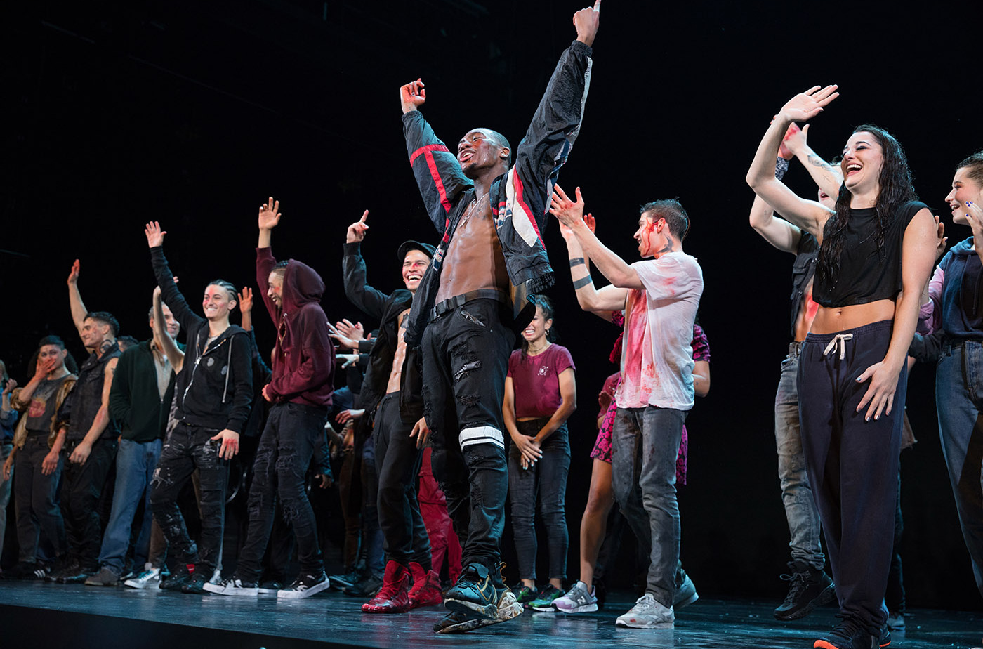 Anne Teresa De Keersmaekers Choreografie flutet die Bühne und taucht in die per Video eröffneten Tiefenschichten des Raumes ein. Dabei erinnert die Sogwirkung des wirbelnden Treibens an «Vortex Temporum», eine frühere Arbeit der Belgierin, die 2016 zu Livemusik von Gérard Grisey an der Brooklyn Academy of Music gezeigt wurde. In dieser «West Side Story» empfängt De Keersmaekers geerdete, kantige Bewegungssprache wesentliche Impulse aus Leonard Bernsteins synkopierter, schroffer Komposition. Dabei gelingen bisweilen wunderbare viszerale Effekte, etwa wenn sich Tony und Maria einen Gute-Nacht-Kuss geben und dabei von Mitgliedern der beiden Gangs in Tauzieh-Manier auseinandergezerrt werden – ein Körperbild, das eindringlich jene gesellschaftlichen Zentrifugalkräfte veranschaulicht, die im Musical schließlich in die Katastrophe münden.