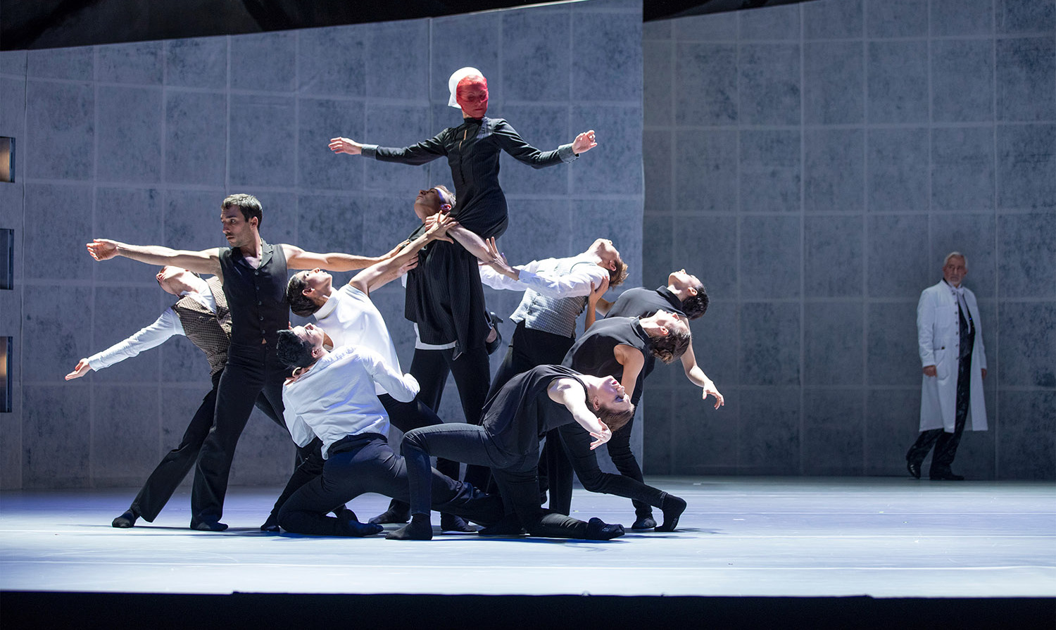 Darauf verkürzt Olaf Schmidt die siebenjährige Wanderschaft des jungen Hans Castorp durch Jahre, Räume und Befindlichkeiten im Davoser Lungensanatorium, wo er doch eigentlich nur seinen Cousin hat besuchen wollen. Phong Le Thanh zeichnet den hanseatischen Kaufmannsspross als Ich- und Weltensucher, vor allem jedoch als aufmerksamen Beobachter der Kranken-Enklave, für die Manuela Müller eine Rundarchitektur vor Alpengipfeln gebaut hat, die an den Schneepalast eines James-Bond-Bösewichts denken lässt. Darin versammelt der Choreograf nicht nur das romanbekannte Personal von Madame Chauchat (unwiderstehlich wildkatzig: Júlia Cortés) bis Lodovico Settembrini (Humanist in Hünengestalt: Wallace Jones), sondern gesellt ihm mit «Zeit» und «Tuberkulose» zwei Allegorien hinzu, die den dramatischen Faktor potenzieren. Claudia Rietschel wechselt einzig mithilfe eines roten Gesichtsschleiers von der Oberin zur «Tuberkulose», von der Hüterin des Lebens zum Engel des Todes. Ein nebensächlicher Akt nur – so famos exekutiert, dass einem beim Hinschauen schüttelfrostig ums Herz wird.