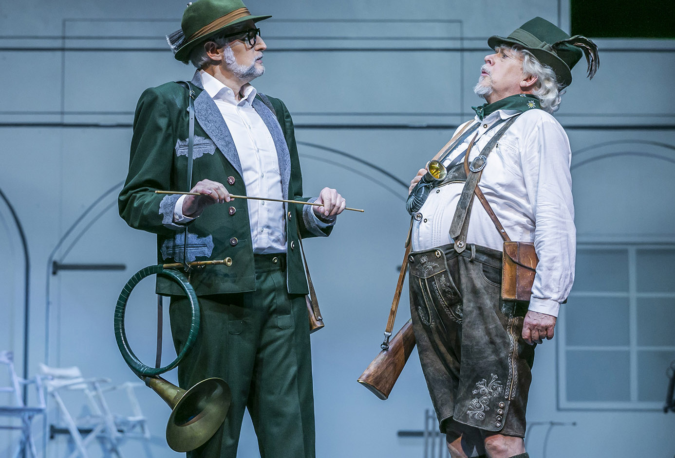 Das eingeschworene Hildesheimer Ensemble – Uwe Tobias Hieronimi als polternd standesdünkelhafter Fürst, Dieter Wahlbuhl als tapsiger Prinzenerzieher, der erzkomödiantische Levente György als Schausteller-Patriarch Cabriolo, Neele Kramer als seine bodenständige Tochter sowie Meike Hartmann und Julian Rohde als traumwandlerischzueinander findendes Liebespaar – wird ideal ergänzt durch drei Gäste: Jan-Philipp Rekeszus ist ein quicker Tremolini, Katharina Schutza eine wunderbar resolute Paola, und Paul Hentze gibt nicht nur den schneidigen Conférencier, sondern brilliert auch als Puppenspieler: in der Rolle von siamesischen Drillingen.