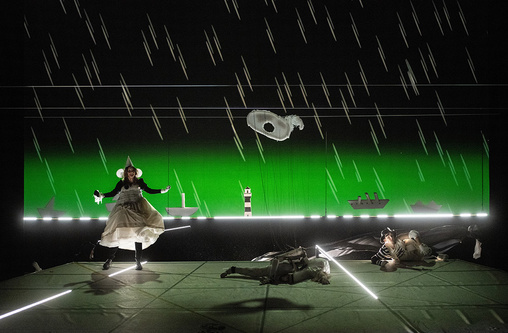 Keine Überraschung: Wie viele Schauspielinszenierungen Freyers, die in der Regel nicht länger als 75 Minuten dauern, wurde auch dieses Stück radikal zusammengekürzt. Und auch hier geht der 87-Jährige weniger als textausdeutender Regisseur ans Werk denn als bildender Künstler, der mit kindlich anmutender Freude seine Fantasien und Ideen im Bühnenbild und in den Kostümen aufgehen lässt. Das ergibt ein Bildertheater, das inhaltlich grobkörnig bleibt. Und Freyer pfeift auf jede Psychologie. Stattdessen gibt’s komische Übertreibungen im Stil der Commedia dell’arte – in Kostümen aus Pumphosen und Hütchen, mit irritierenden Details wie ungleichen Schuhpaaren oder großen Ohren.