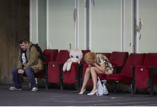 Raue Sitten und Rudelordnung dominieren auch die Männerwelt. Tomski ist der Anführer eines mächtigen Häufleins gestrandeter Gestalten, der Einzige, der einen Anzug trägt. Seine Untergebenen Tschekalinski, Surin, Tschaplitzki und Narumov geben die Hofnarren respektive Fieslinge, die sich die Hände dreckig machen, wenn es darum geht, German zu terrorisieren (wofür sich dieser im letzten Akt dann zu rächen weiß). Sie alle spielen sich das Leben aus dem Leib, um wenigstens etwas zu spüren, um der Sinnlosigkeit ihres Soseins (die ihnen durchaus bewusst ist) zu entfliehen, sie zu sublimieren.