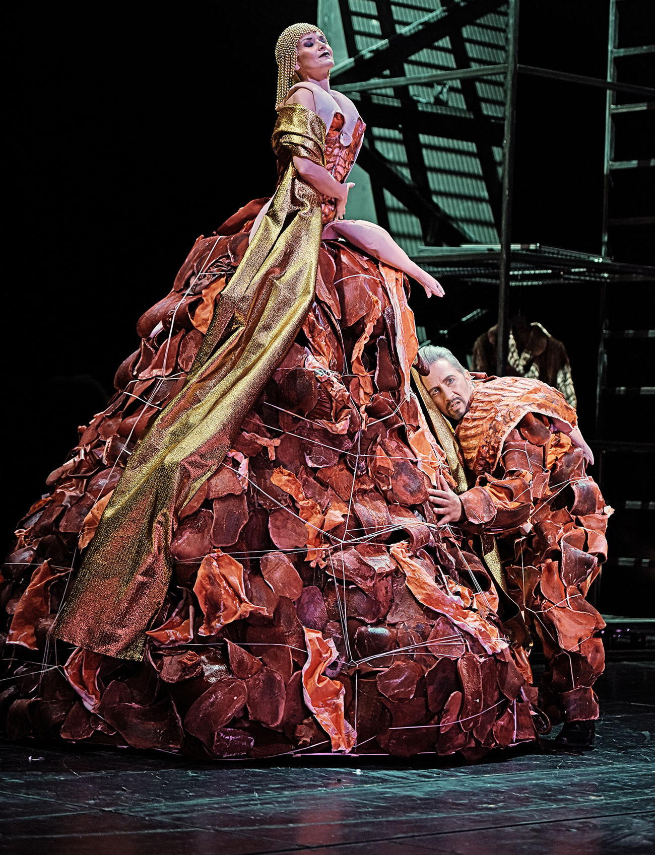 Hätten sie es vergeigt, das Stück wäre nicht mehr zu retten gewesen. Aber GMD Hermann Bäumer, der mit einem überlauten Wirkungstreffer anfangs Luzifer höchstselbst (Peter Felix Bauer) auf die Bretter schickte, bekam die Klangbalance schnell in den Griff, bevor Vida Miknevičiūtė erschien, die sich dann das Orchester schlicht und ergreifend unterwarf. Einem Fixstern gleich phosphoreszierte ihr Auftritt als Große Hure über dieser an Glanzlichtern so reichen Produktion: der deutschen Erstaufführung von Rued Langgaards Mysterienspiel «Antikrist», entstanden zwischen 1920 und 1930, auf einer Bühne erstmals gezeigt 1999, in Innsbruck.
