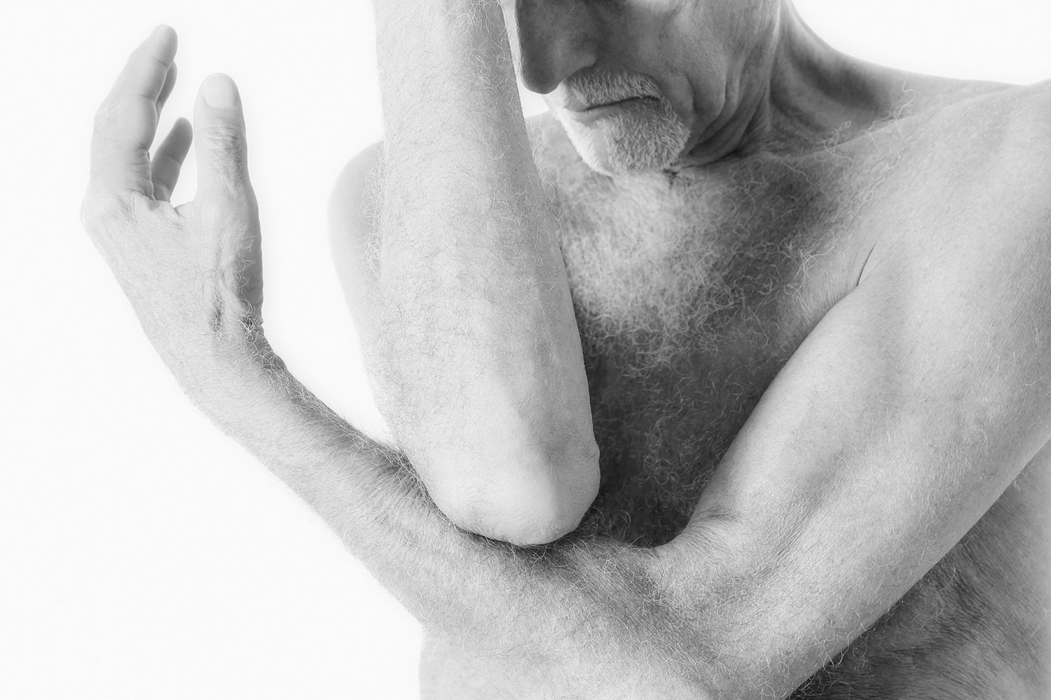 Auch Tänzer werden älter. Es fällt nur selten auf, weil sie in der Regel prompt durch jüngere Kollegen ersetzt werden. Doch wer sagt, dass alle Tänzer jung sein müssen? Tanz ist kein Sport, sondern Kunst. Und die kennt kein Alter. Eigentlich. «Die Senioren hören mit dem Tanzen ohnehin nicht auf. Sie tanzen im Kopf, sie unterrichten, oder sie tanzen am Strand», sagt die Fotografin Polina Jourdain-Kobycheva. In Jacques Alberca fand sie ein kongeniales Fotomodell: 76 Jahre alt, unglaubliche Ausstrahlung. Der Choreograf, Interpret, Pädagoge und ehemalige Berater des französischen Kulturministeriums steht noch heute auf der Bühne. Von Jourdain-Kobycheva ließ er sich im Adamskostüm ablichten. «Das fiel ihm natürlich nicht ganz leicht», erinnert sich die Russin aus Sankt Petersburg, die heute in Biarritz lebt. Tänzer fotografierte die ehemalige Soziologie- und Kunststudentin schon am Mariinsky. Bühnenfotos macht sie heute nicht mehr. «Das ist doch immer dasselbe», winkt sie ab. Auf den Körper wirft sie einen grafischen Blick, am Tänzer interessiert sie allein dessen Persönlichkeit.